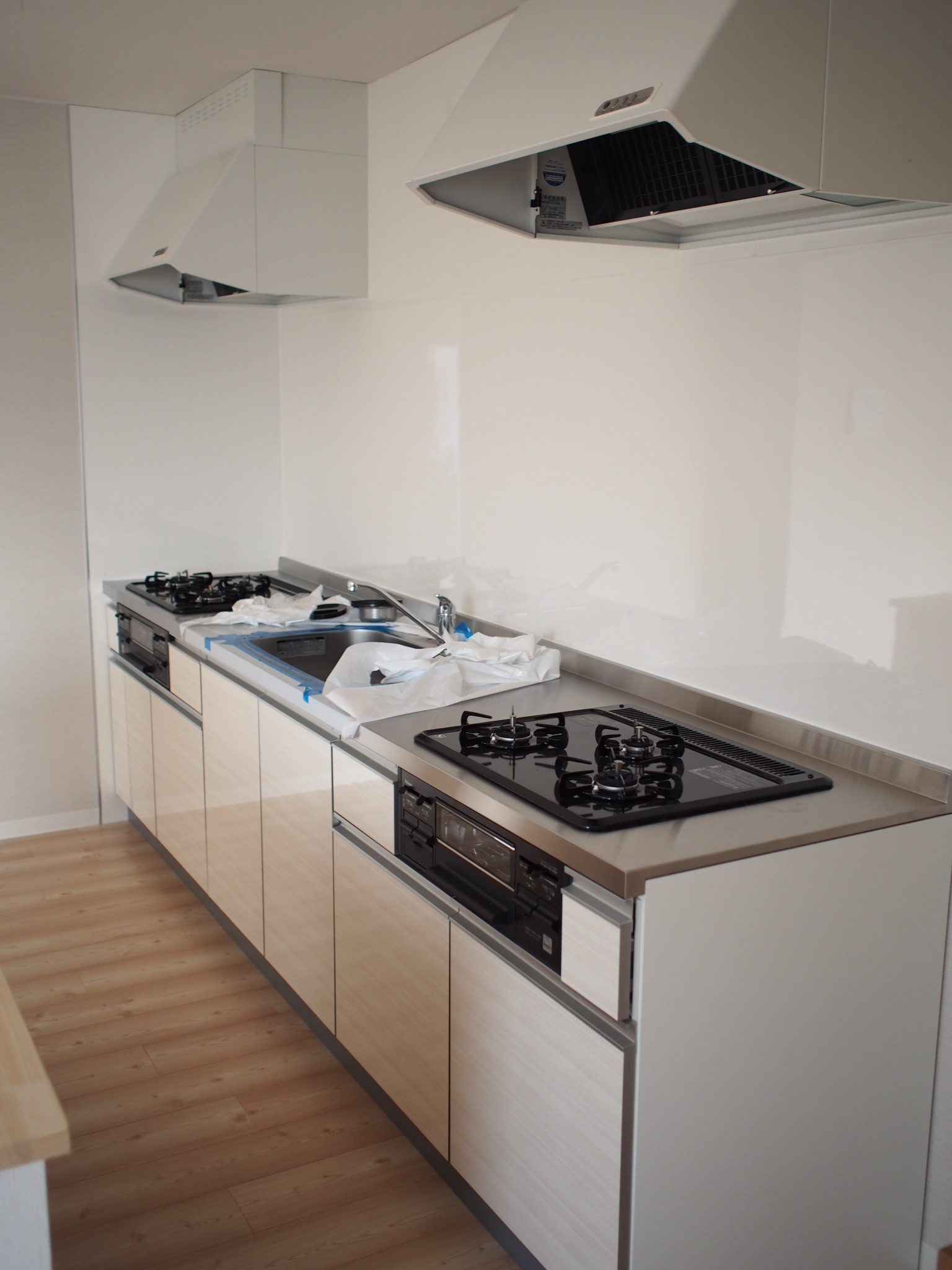 最大12部屋の入居者さん達が生活するので、3口コンロが2台設置してあります。